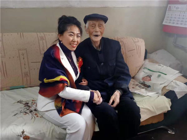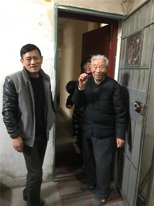 甘肅絲路布衣酒店管理有限公司董事長魏永祥(左)與老人合影