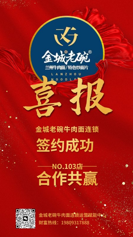 再次祝賀金城老碗牛肉面連鎖金昌加盟店簽約成功!祝生意興隆,財(cái)源滾滾!